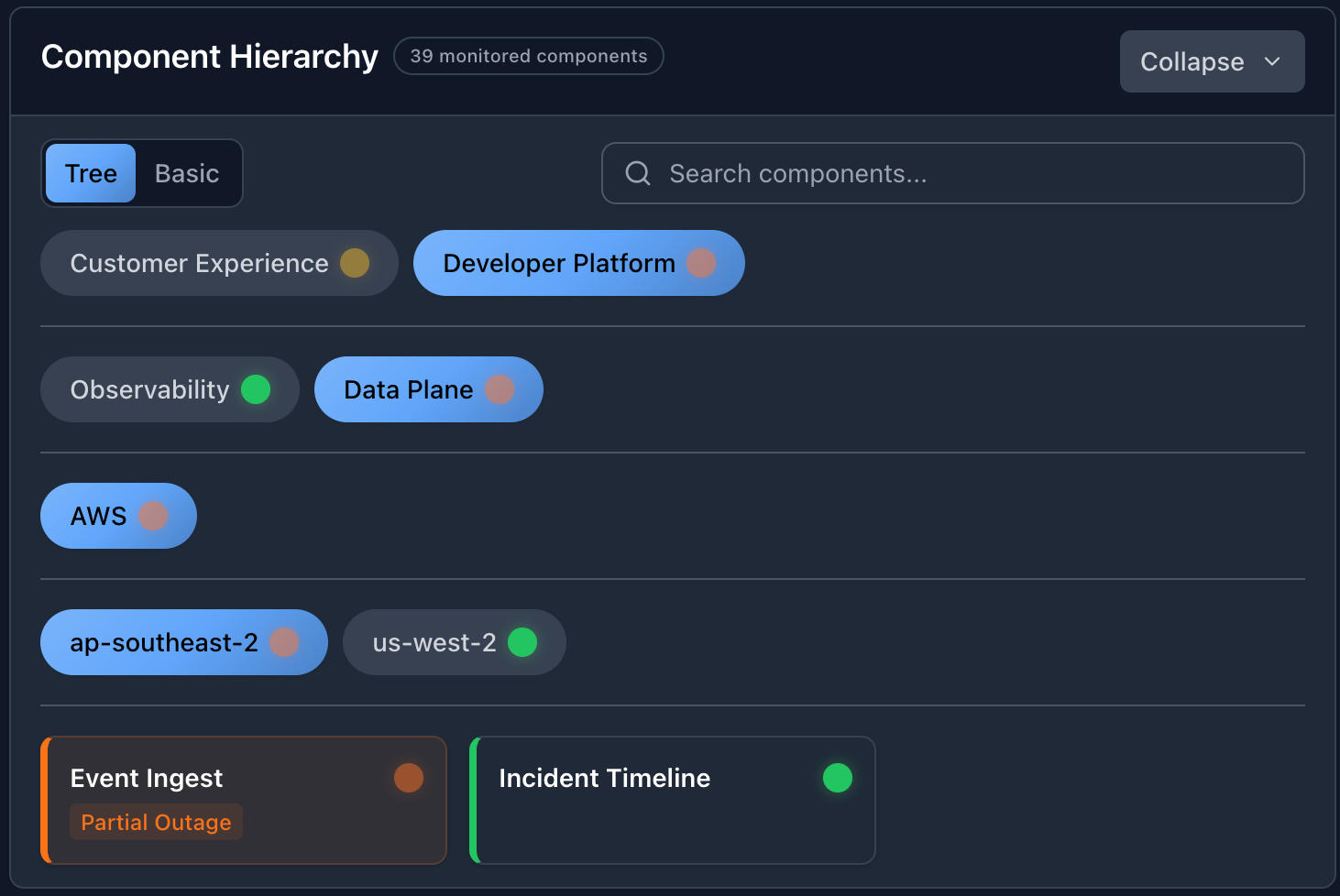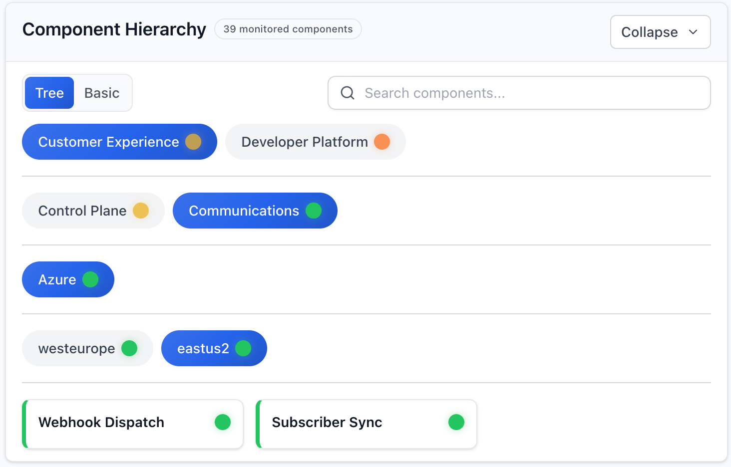 Show the right services and incidents to each region, product line, or stakeholder group.